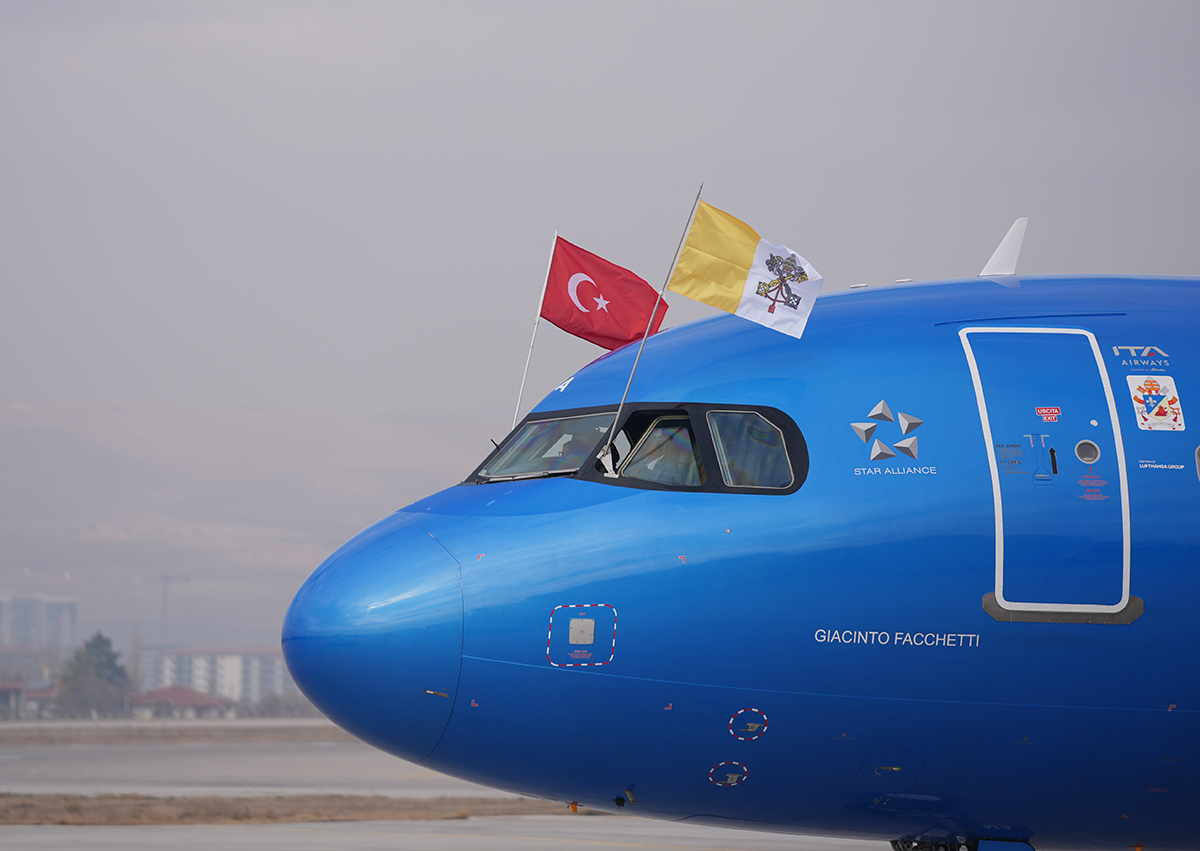 Papa’yı taşıyan ITA Airways’e ait EI-INA kuyruk tescilli Airbus A320 tipi uçak yerel saatle 07.58’de Ankara’ya gitmek üzere Roma’dan havalandı.